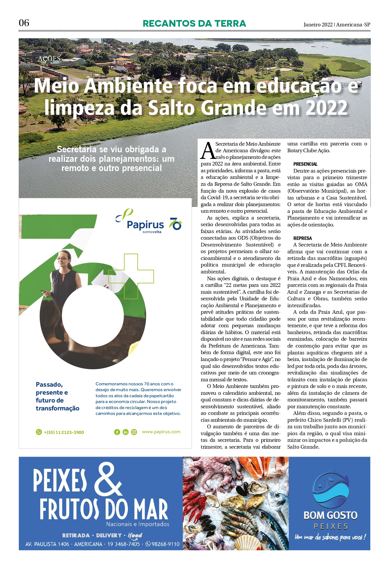 A Secretaria de Meio Ambiente de Americana divulgou este mês o planejamento de ações para 2022 na área ambiental. Entre as prioridades, informa a pasta, está a educação ambiental e a limpeza da Represa de Salto Grande. Em função da nova explosão de casos da Covid-19, a secretaria se viu obrigada a realizar dois planejamentos: um remoto e outro presencial.