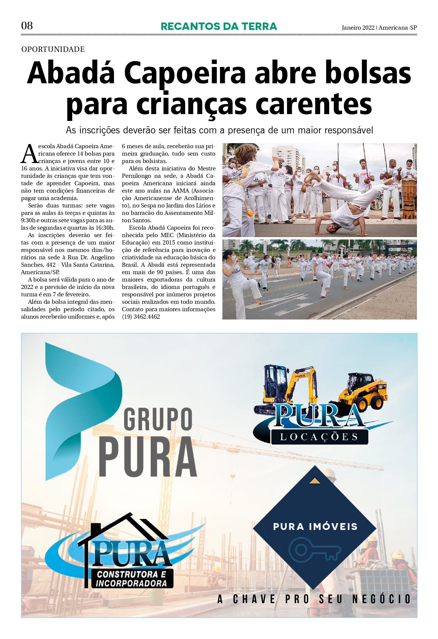 A escola Abadá Capoeira Americana oferece 14 bolsas para crianças e jovens entre 10 e 16 anos. A iniciativa visa dar oportunidade às crianças que tem vontade de aprender Capoeira, mas não tem condições financeiras de pagar uma academia.