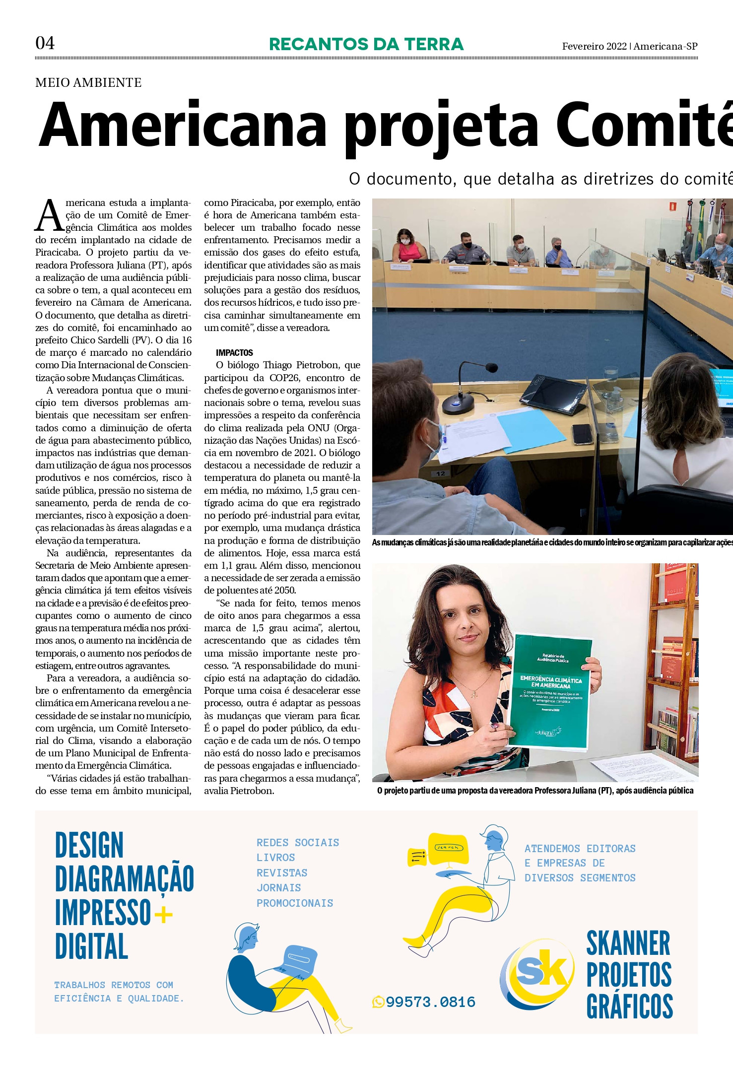 Para a vereadora, a audiência sobre o enfrentamento da emergência climática em Americana revelou a necessidade de se instalar no município, com urgência, um Comitê Intersetorial do Clima, visando a elaboração de um Plano Municipal de Enfrentamento da Emergência Climática.